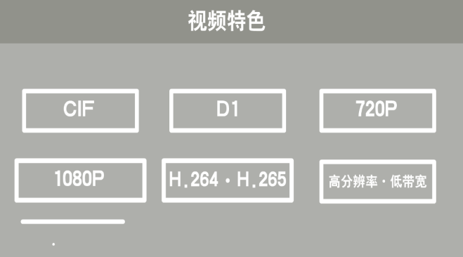支持CIF、D1、720P、1080P多种分辨率,采用H.264、H.265编码格式,高分辨率、低带宽;多种视频辅助设置