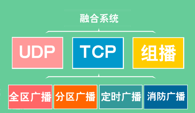 融合系统,是集IP网络广播系统、IP网络对讲系统、报警、视频功能于一体的融合系统